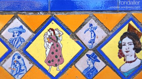 Com que avui parlem de ceràmica, pararem atenció una interessant decoració de rajoles en relleu, representant estampes típiques andaluses. Està signada per Hnos. Morillo, una prestigiosa terrisseria familiar malaguenya.