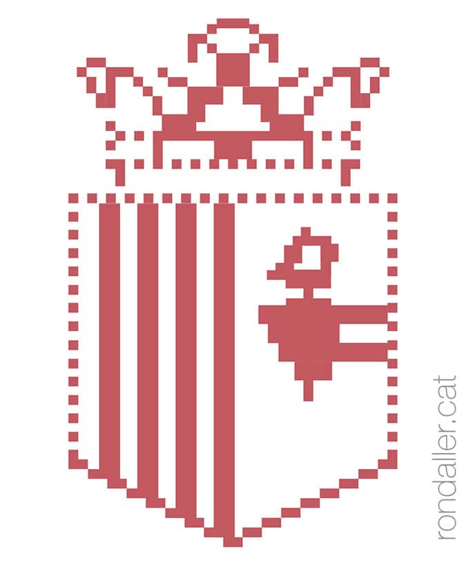 Deixo pel final la versió actual utilitzada pel Consistori. Els escuts de molts municipis no han aconseguit sobreviure a la febre del disseny i han estat actualitzats. La majoria han deixat de ser un escut heràldic per convertir-se en un logotip, oblidant les veus de les persones enteses en heràldica. Adeu a la normativa que vetllava pel bon ús d’aquest element històric identificatiu.